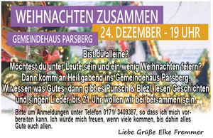 Die nächste öffentliche Kirchenvorstandssitzung findet am Montag, 19.01.2026 (verlegt vom 12.01.2026), um 19.30 Uhr im Gemeindehaus Parsberg statt.…